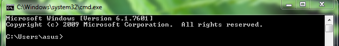 Cara bukanya Start => Run , kemudian ketik cmd lalu Enter