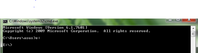 Jika flashdisk anda ada di drive (E:) , maka terlebih dahuli ketik "e:" (tanpa tanda petik) lalu enter